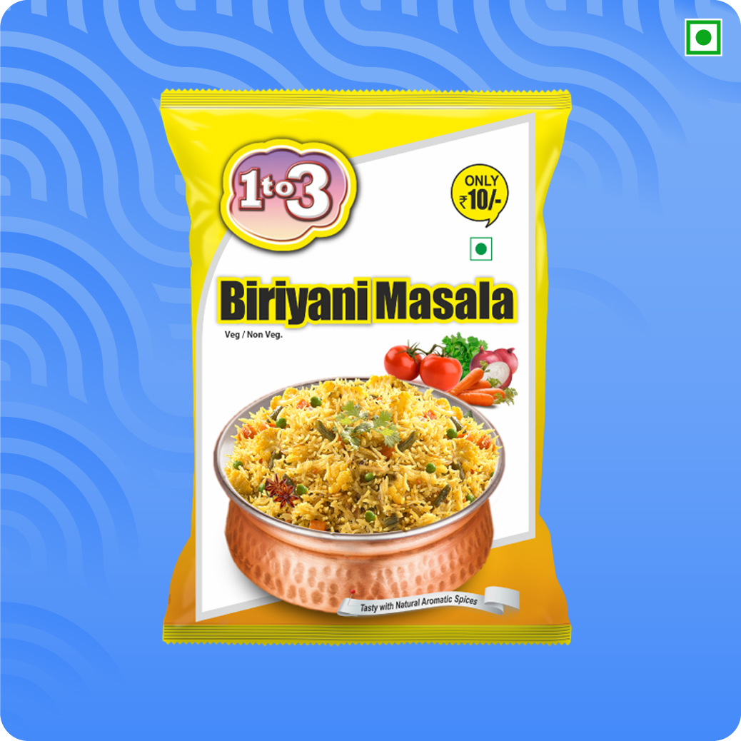 Savory and aroma of Indian spices is blended together to make our all time favourite 1to3 Biriyani Masala